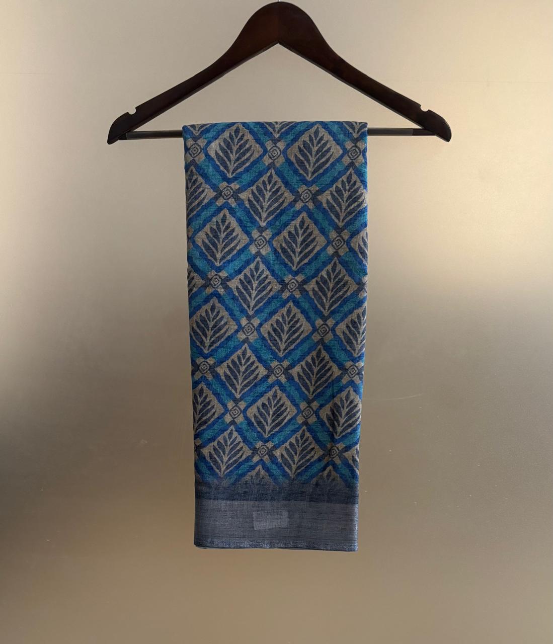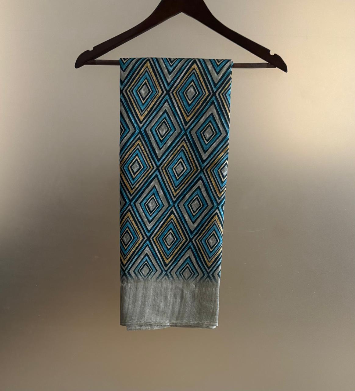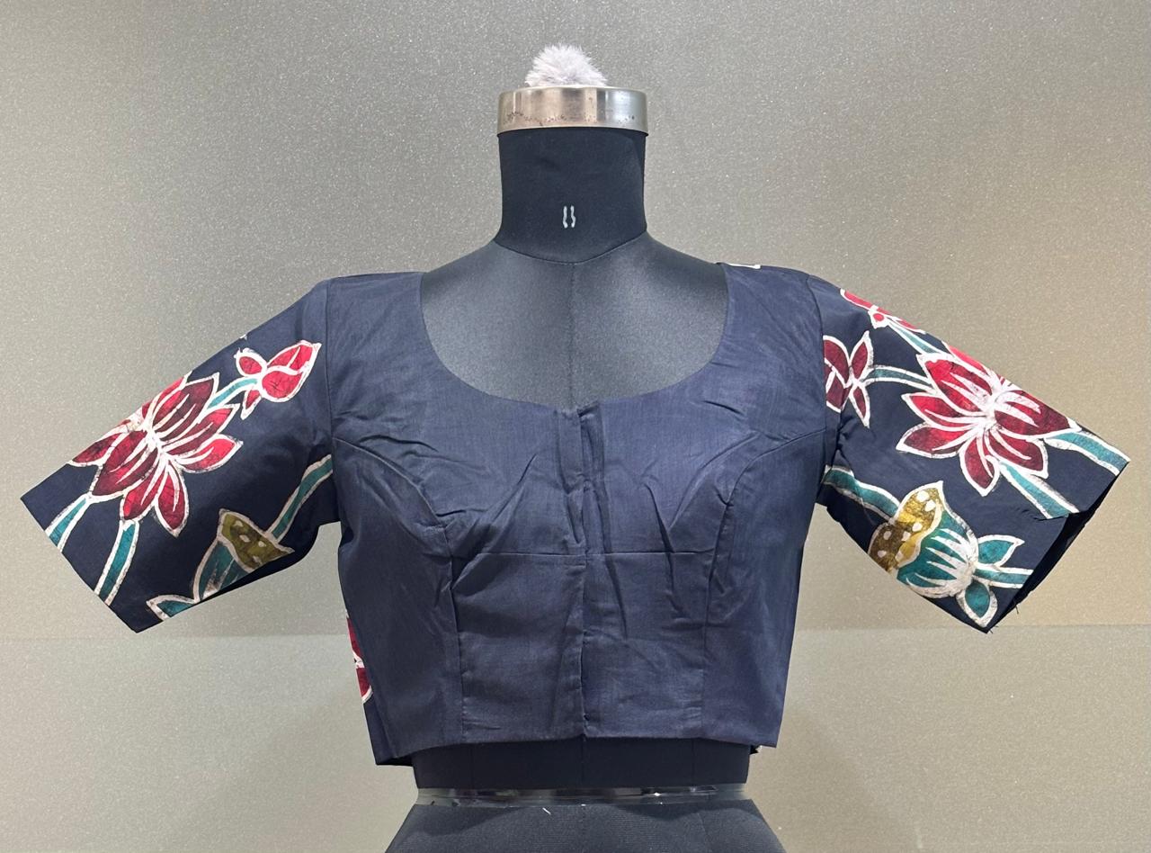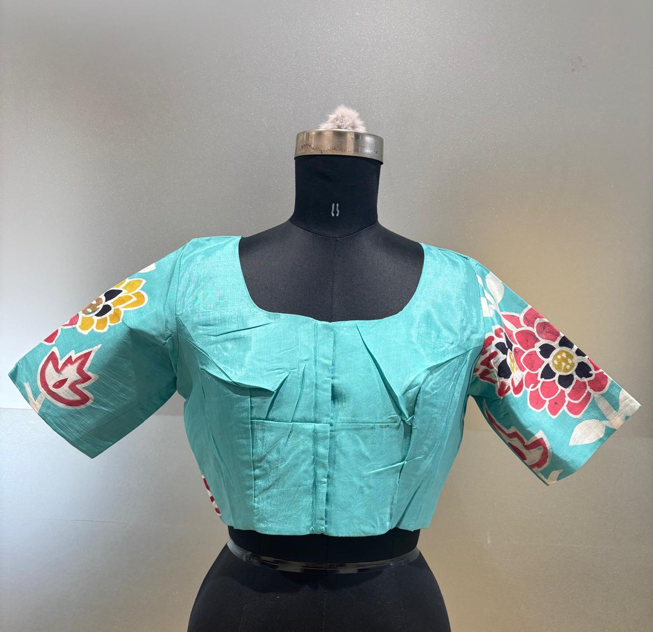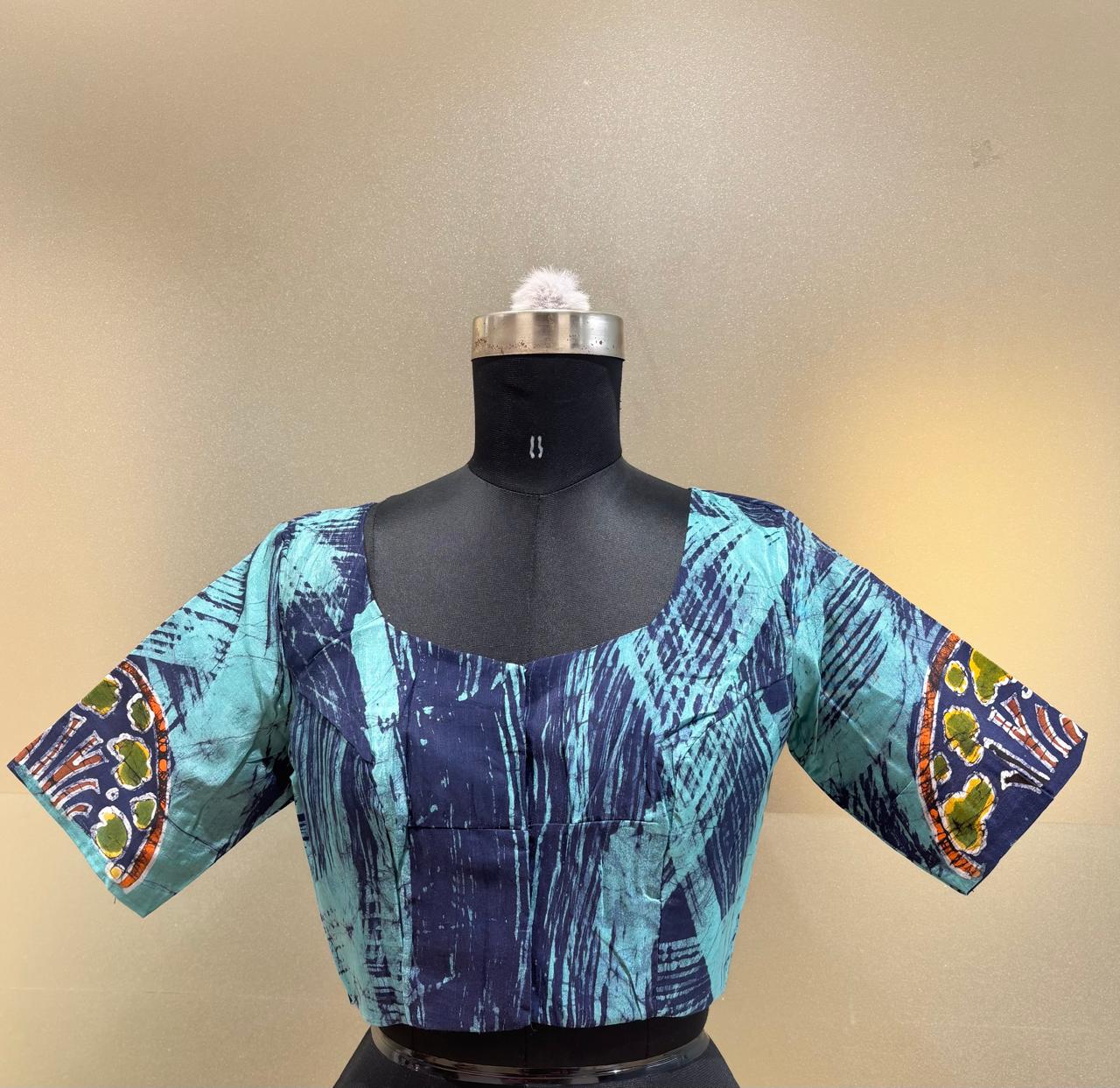 Printed Silk Blouse ( Dark Blue with Teal green)