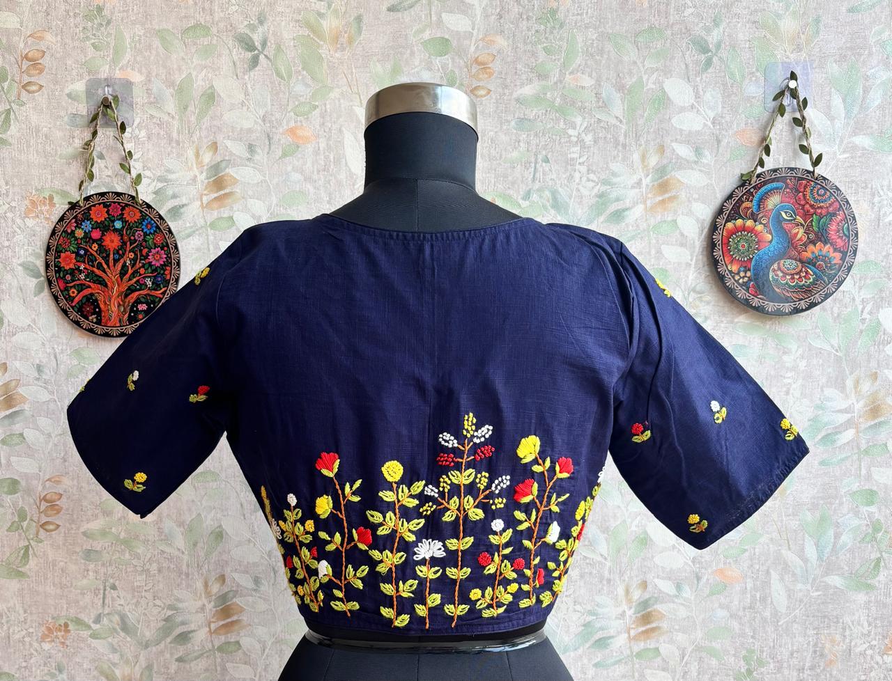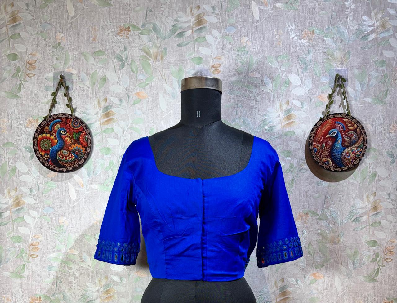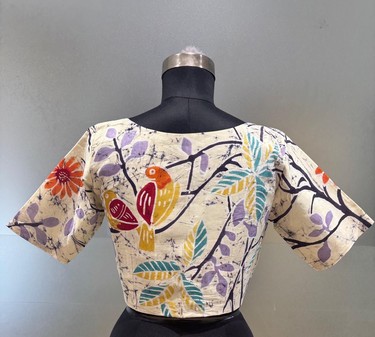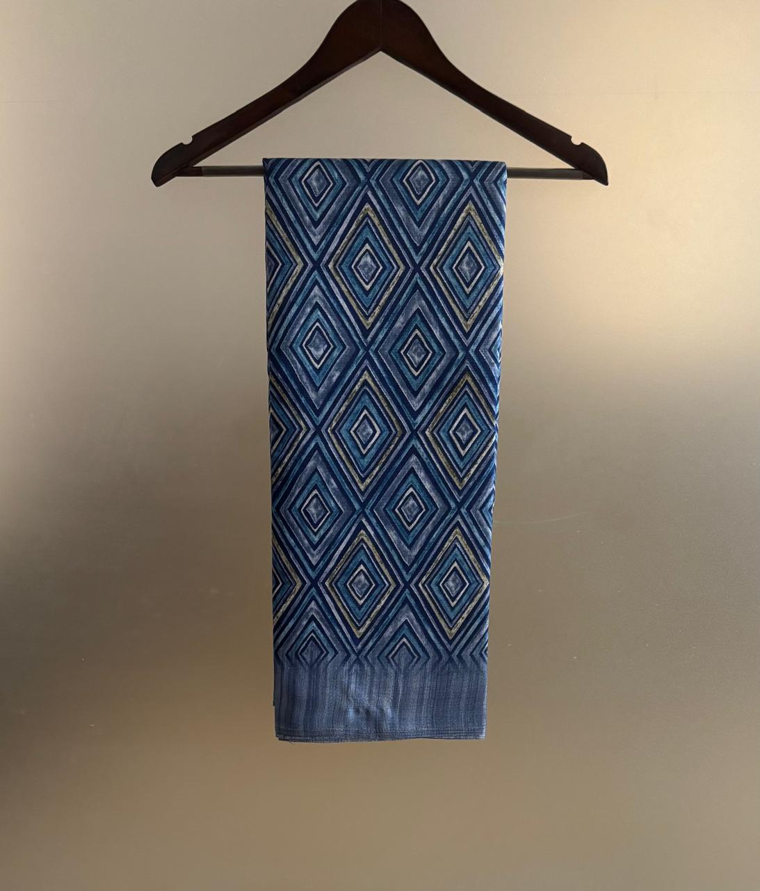 Printed Silk Blouse ( Dark Blue with Teal green)