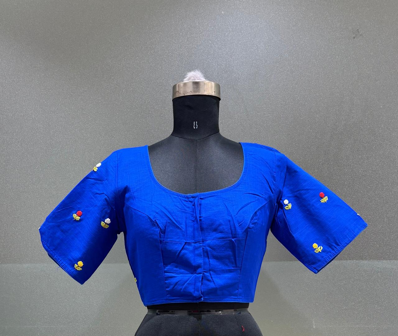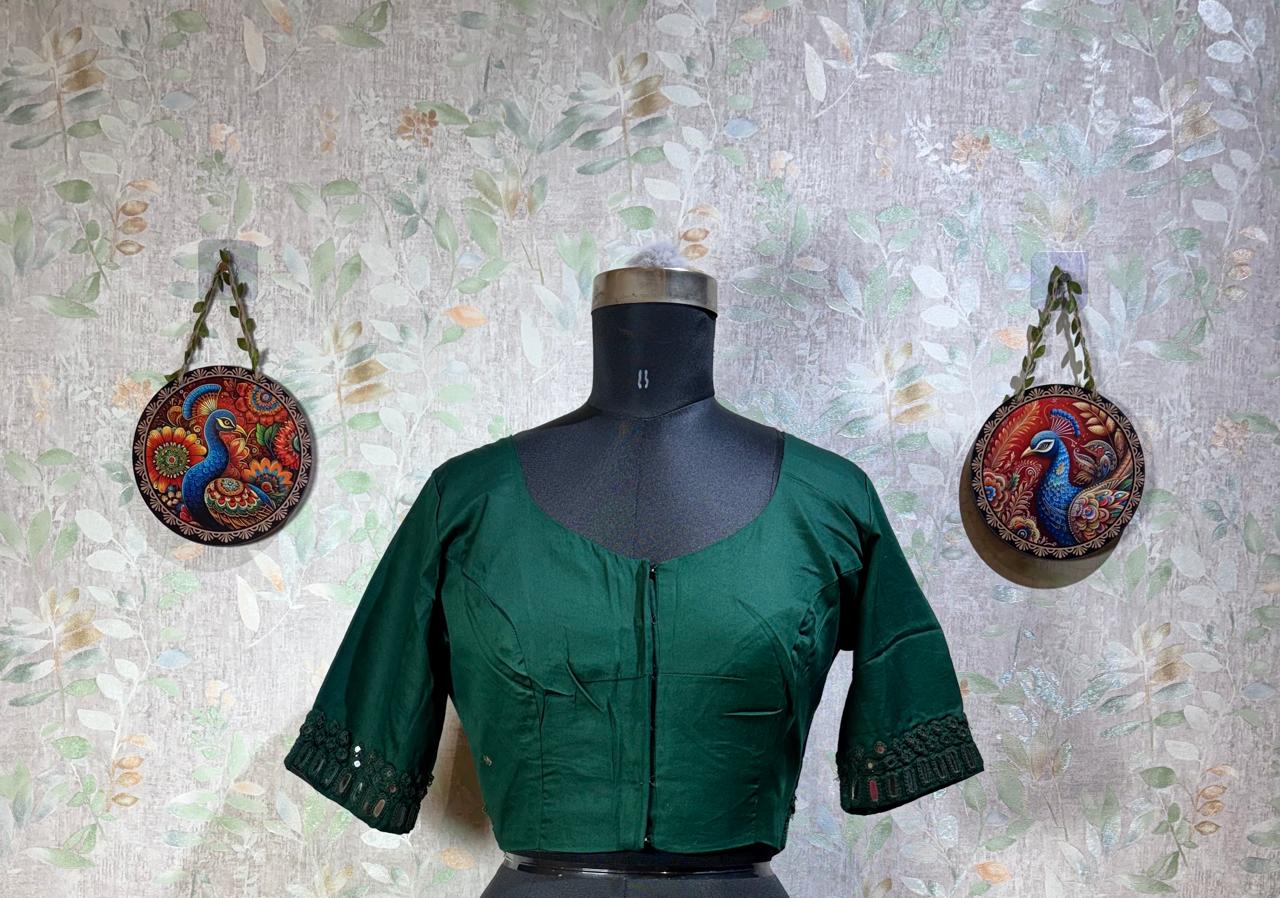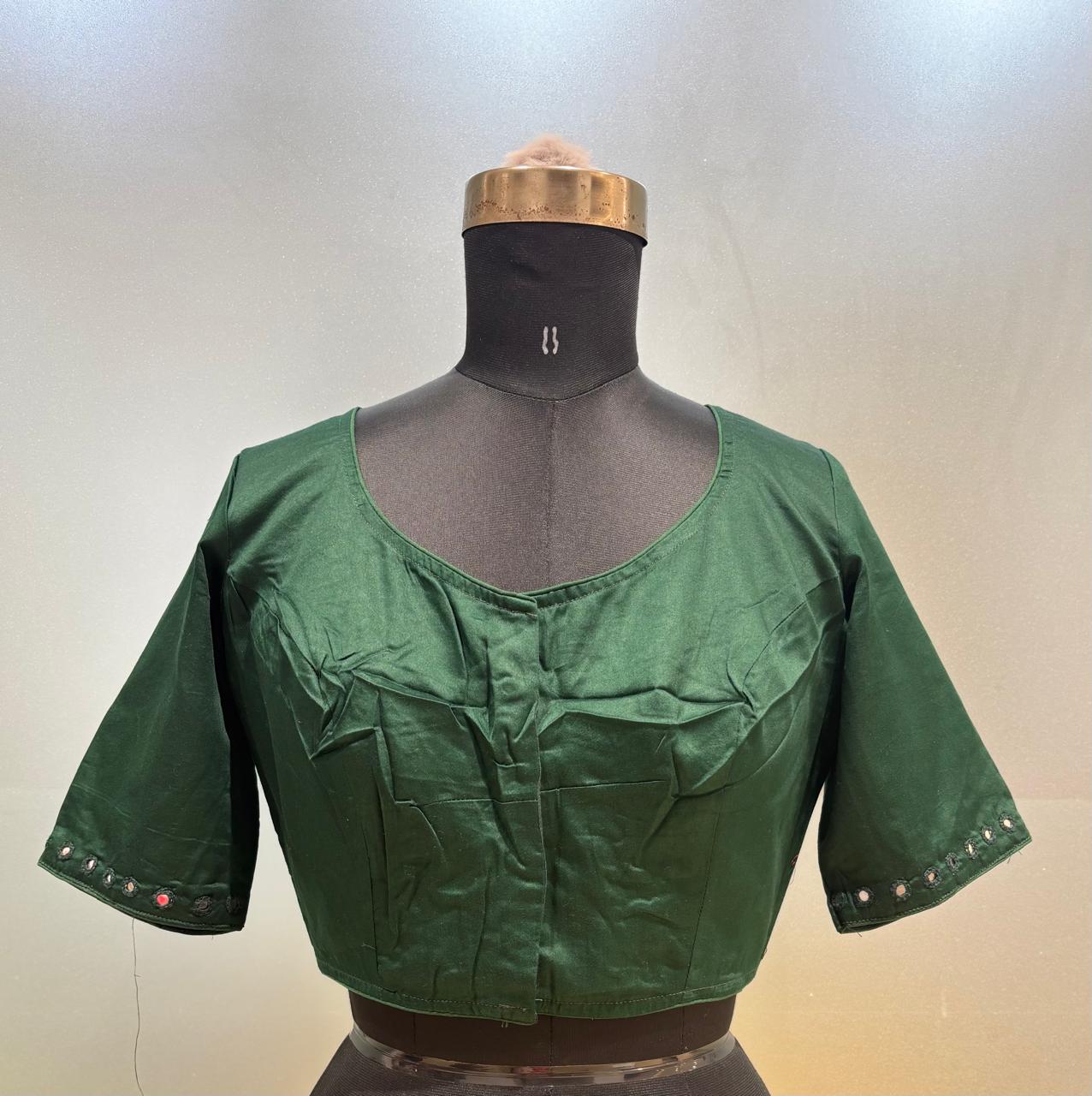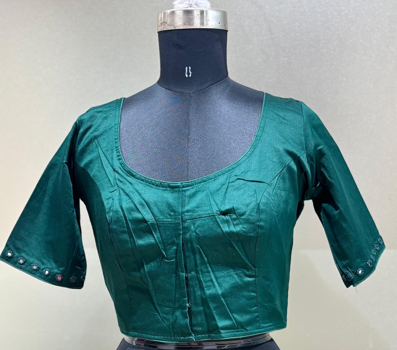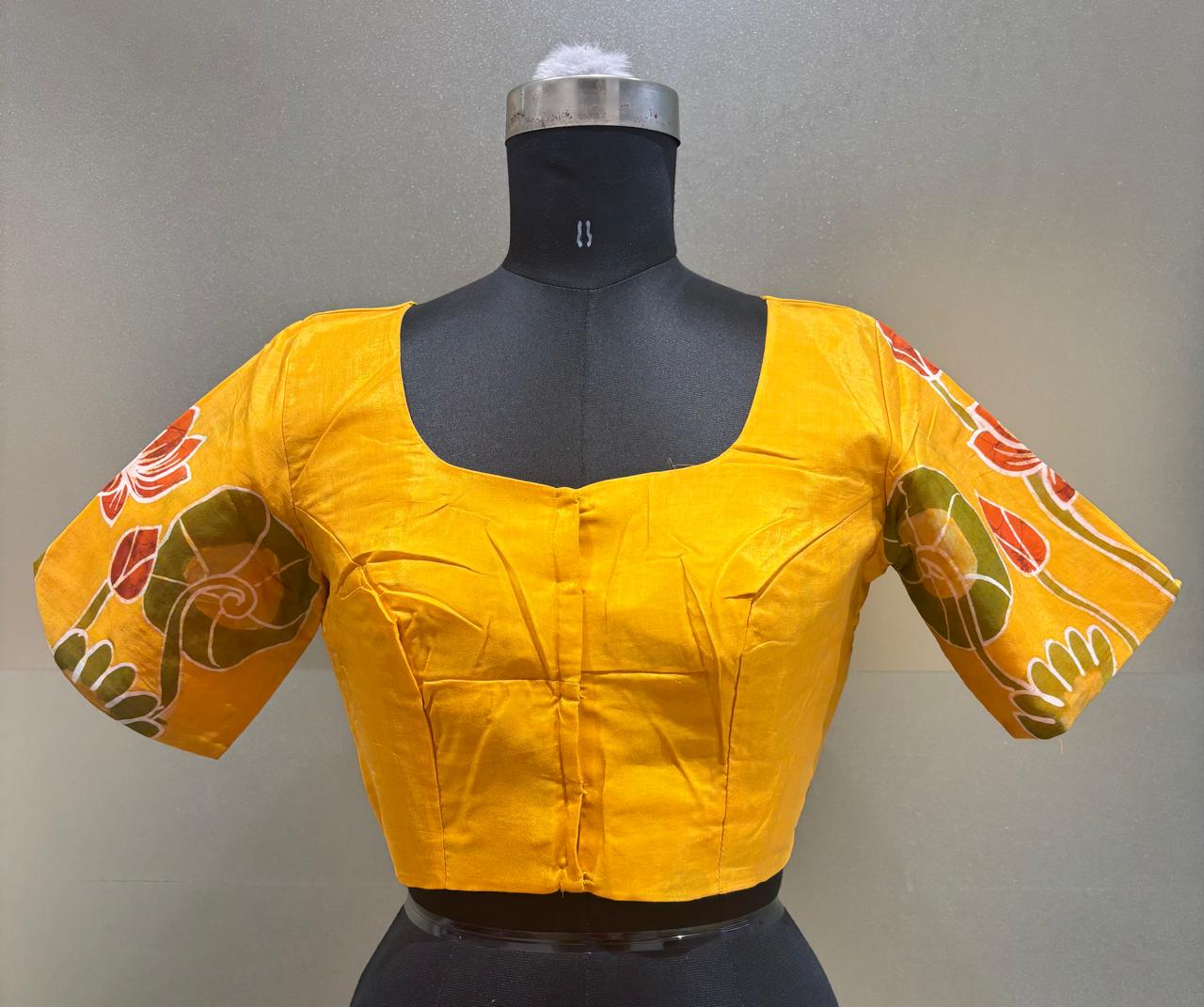 Printed Silk Blouse ( Dark Blue with Teal green)