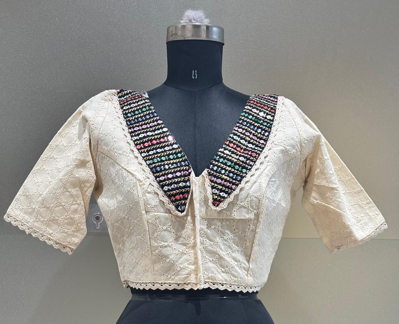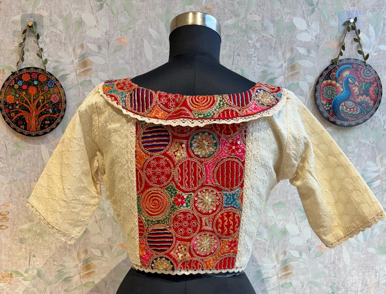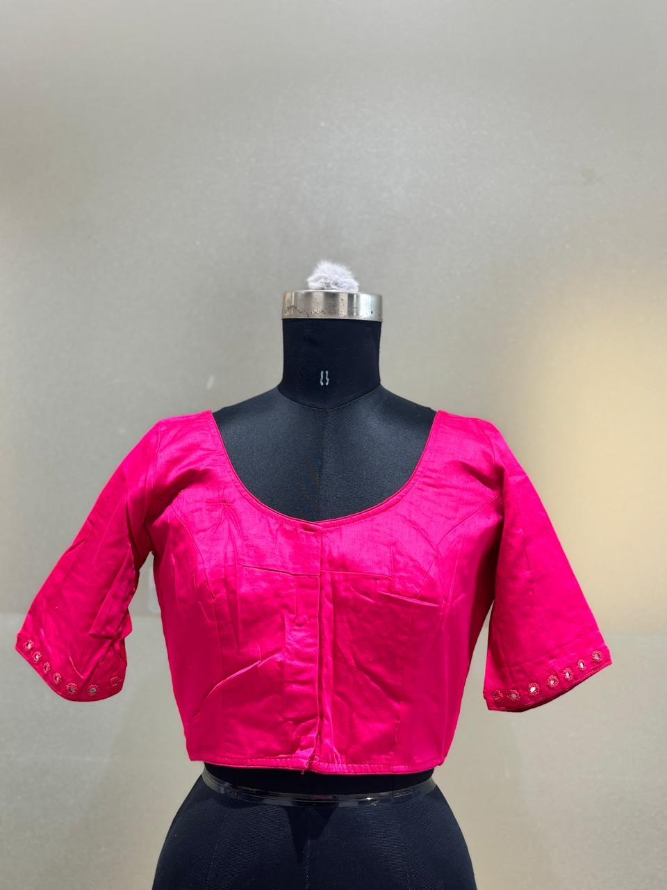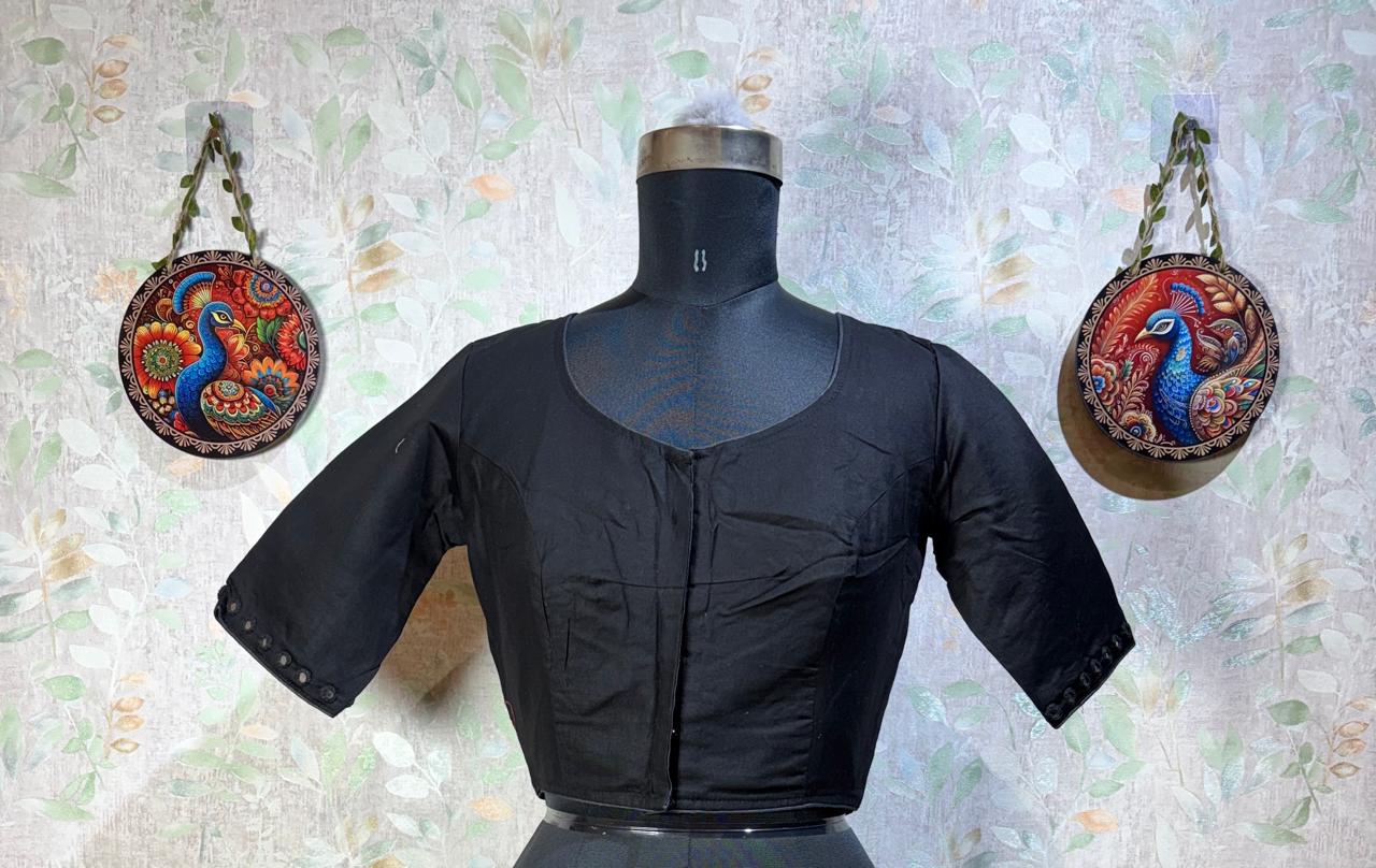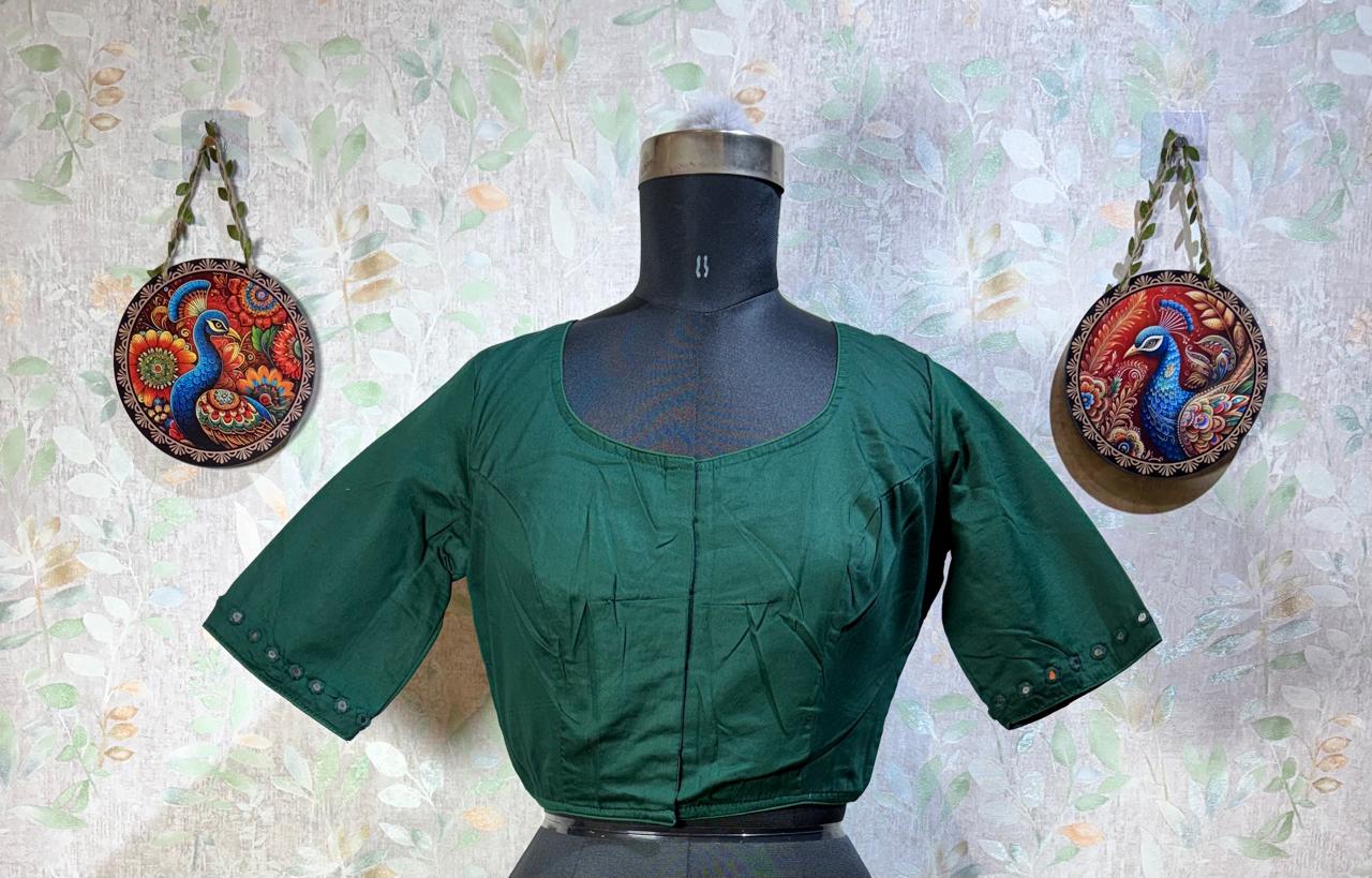 Printed Silk Blouse ( Dark Blue with Teal green)