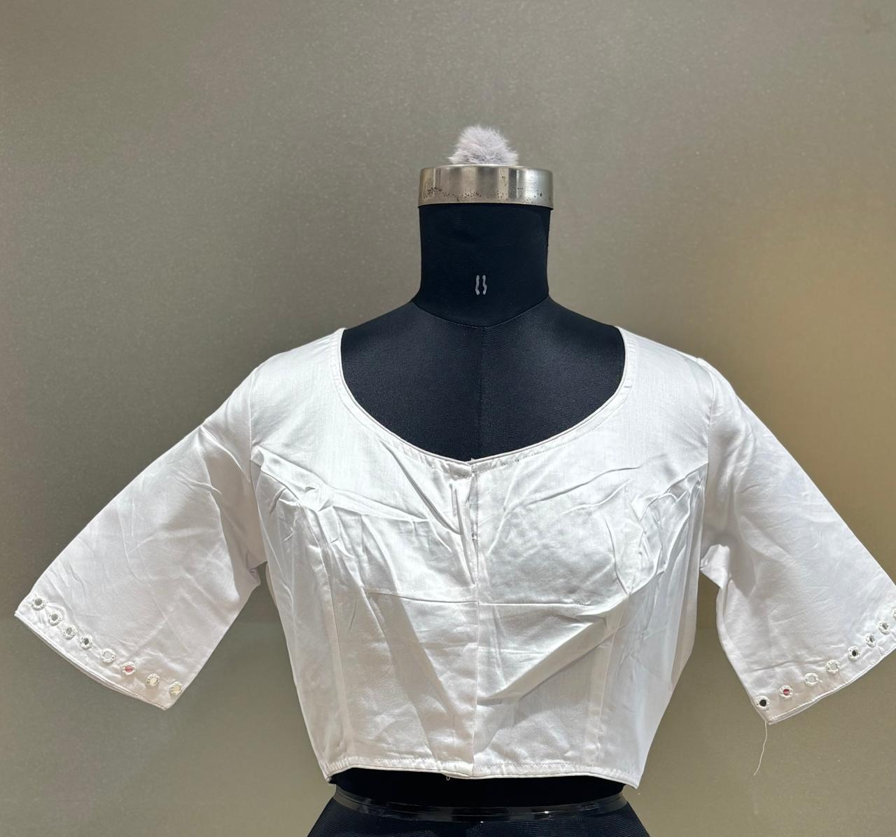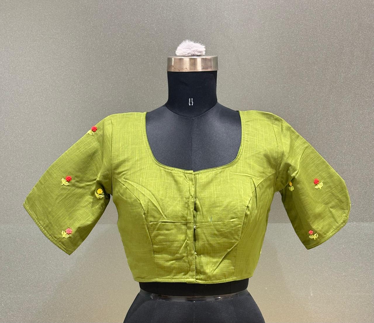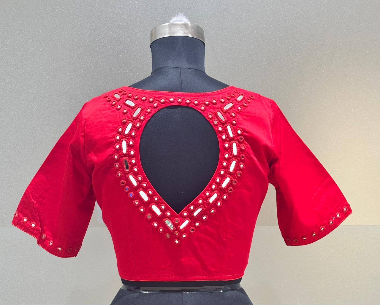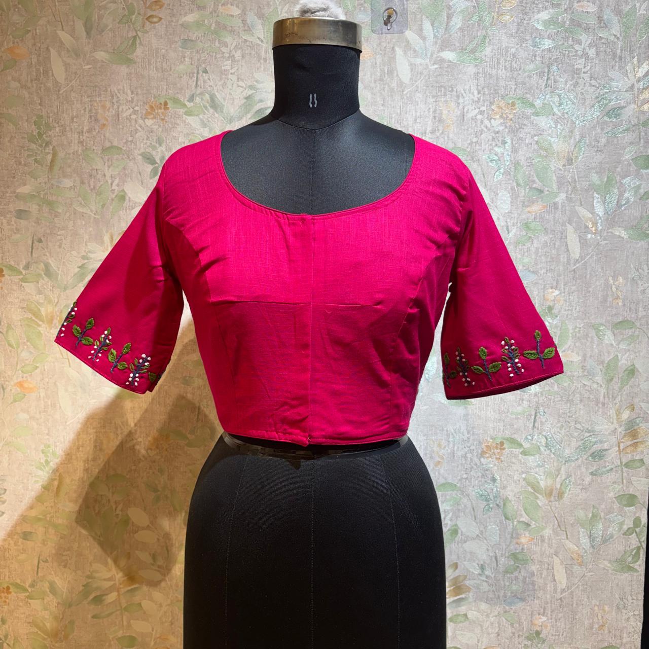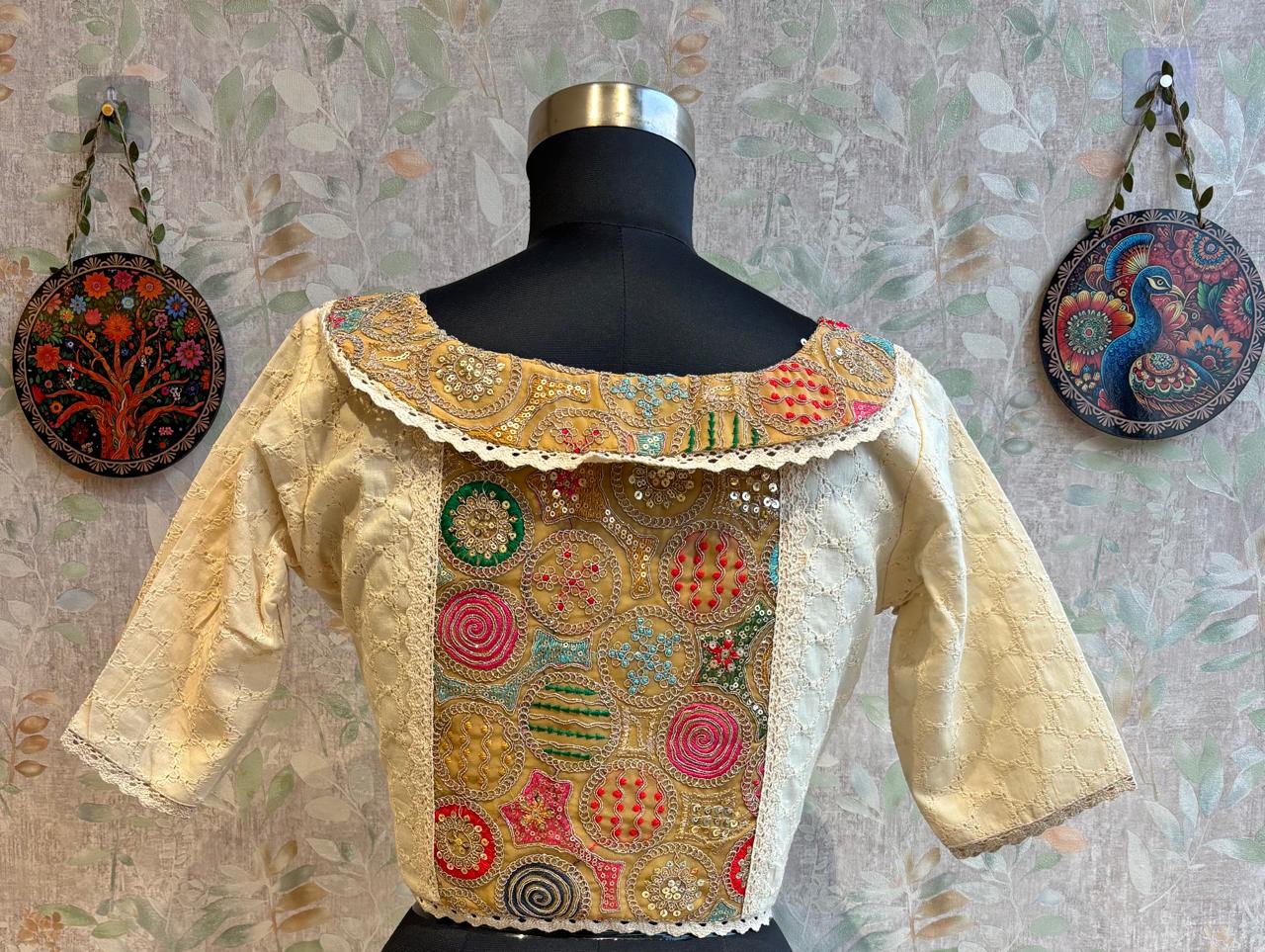 Printed Silk Blouse ( Dark Blue with Teal green)