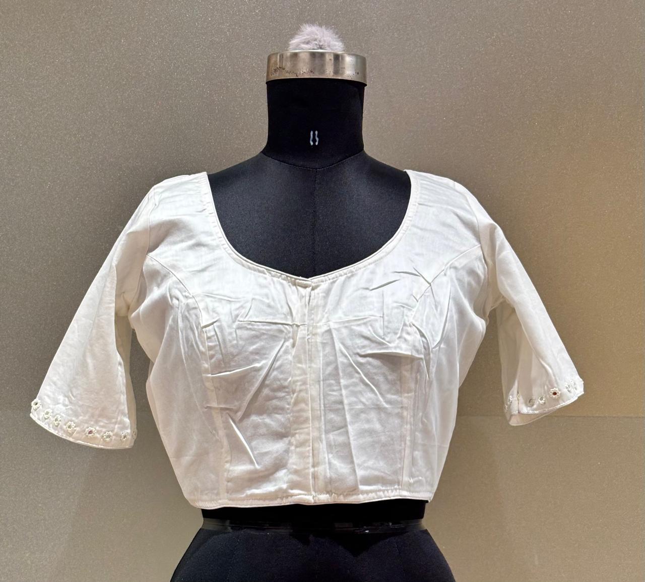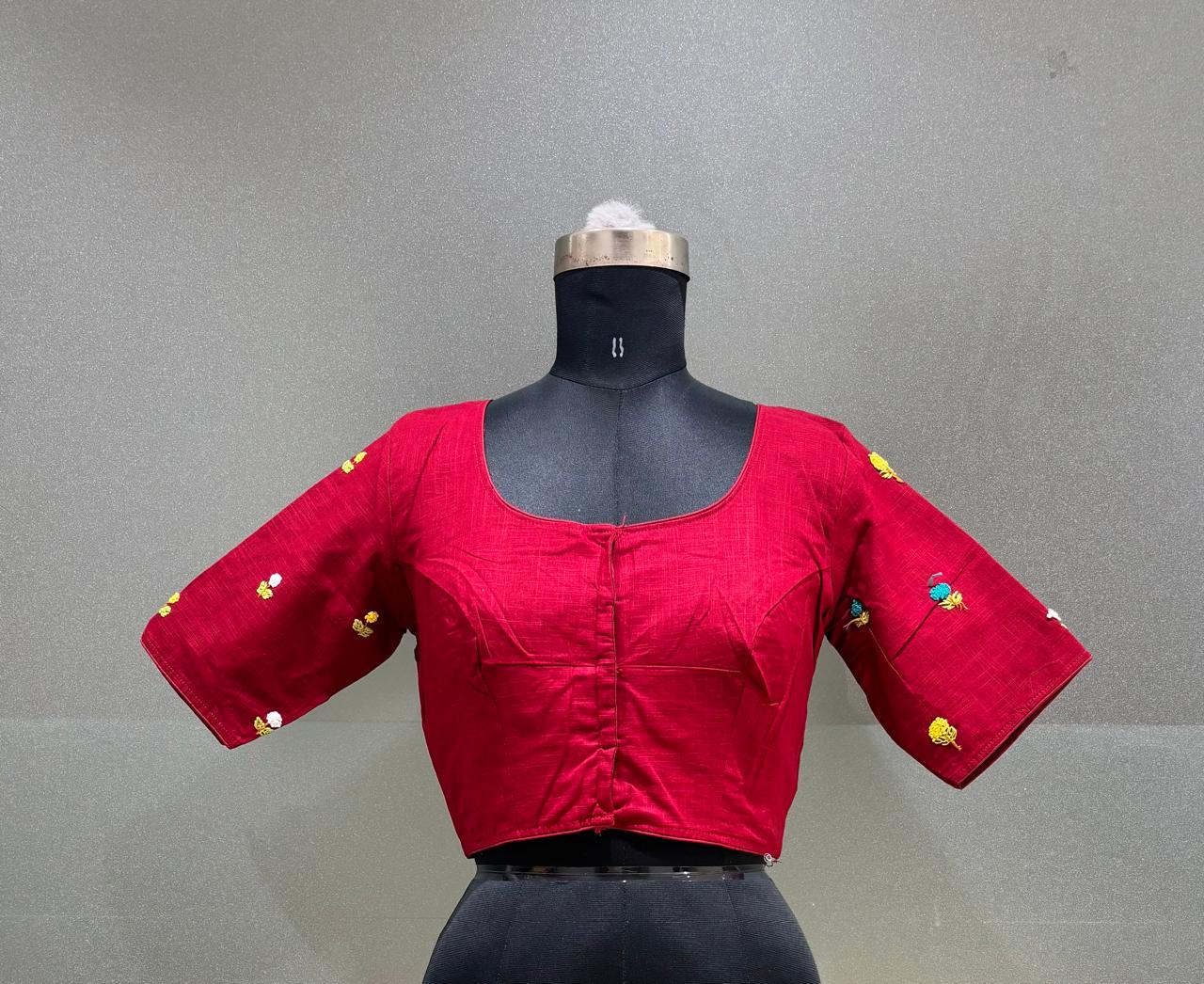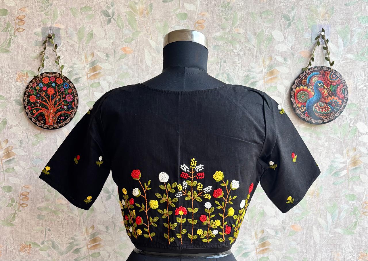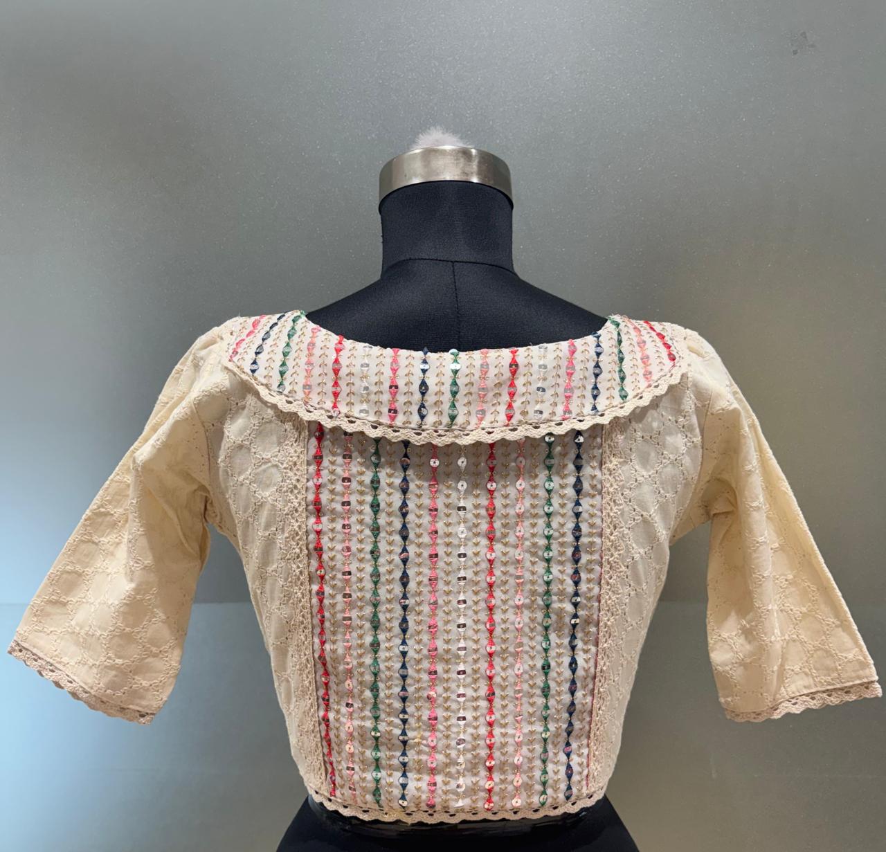 Printed Silk Blouse ( Dark Blue with Teal green)