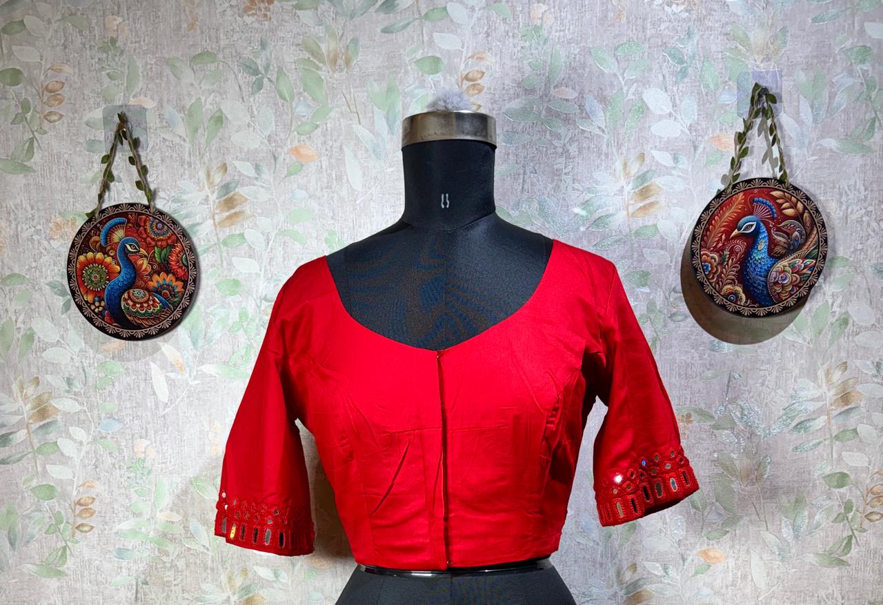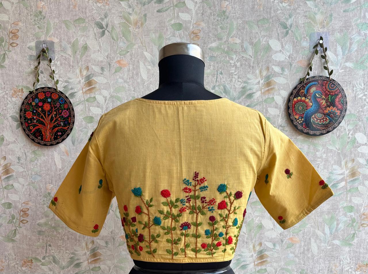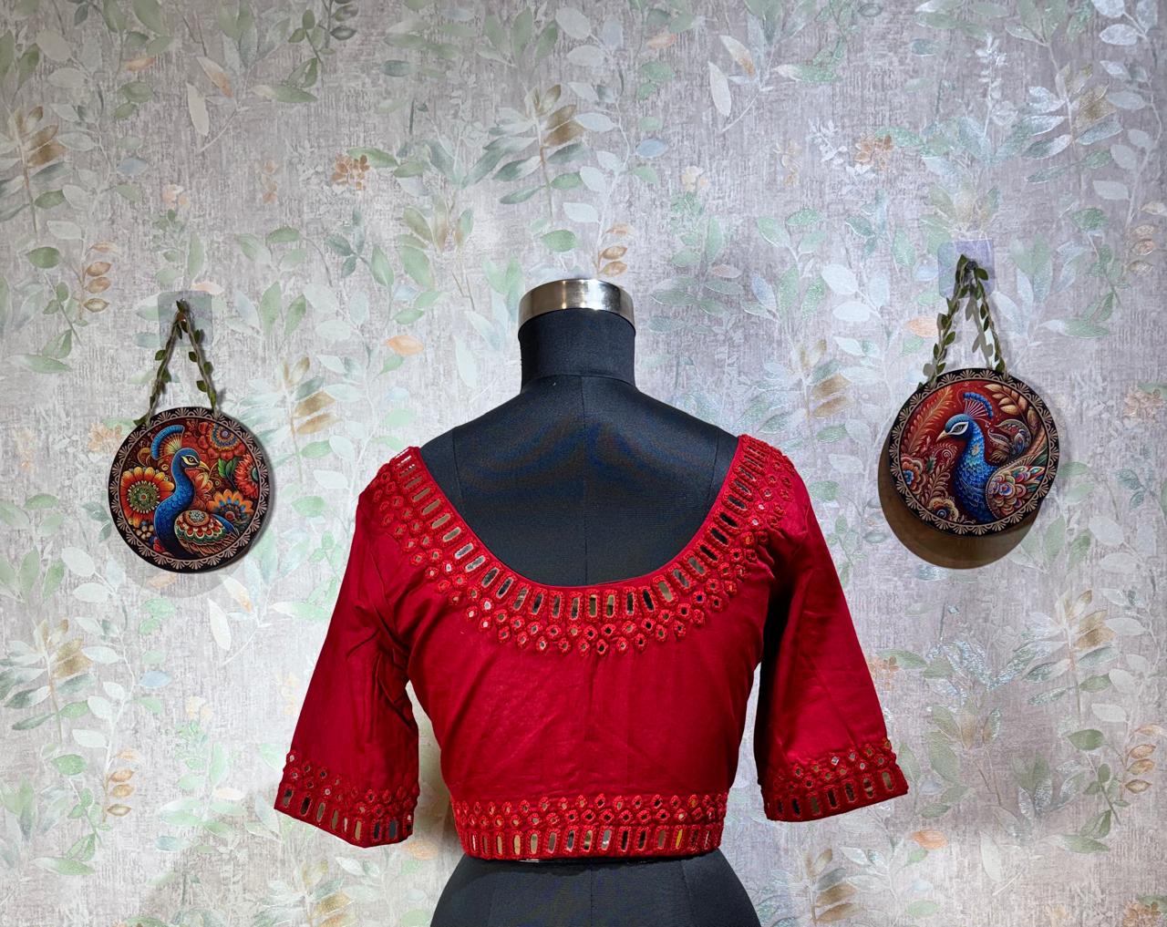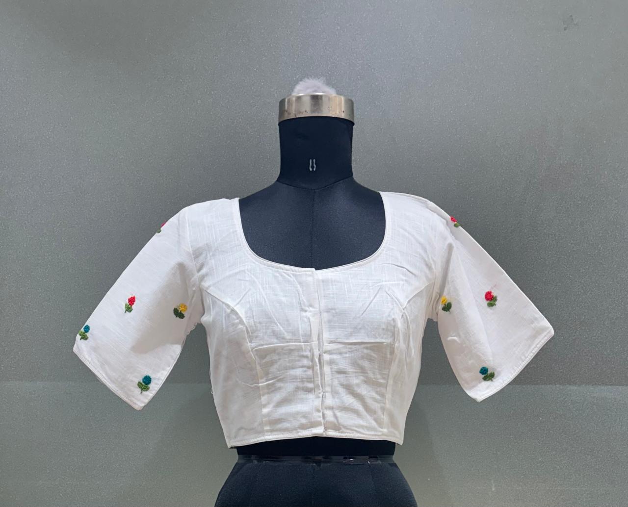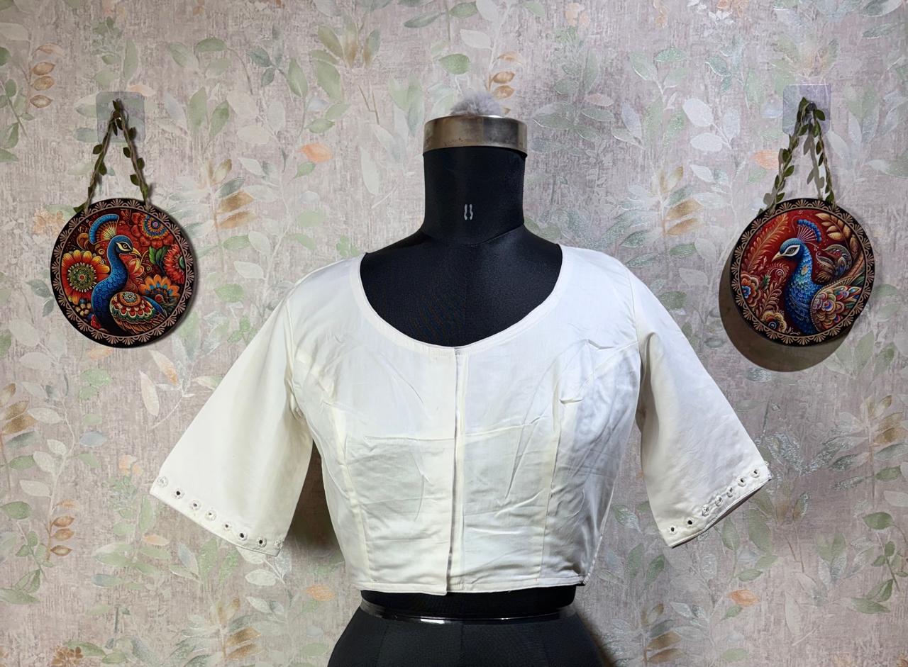 Printed Silk Blouse ( Dark Blue with Teal green)
