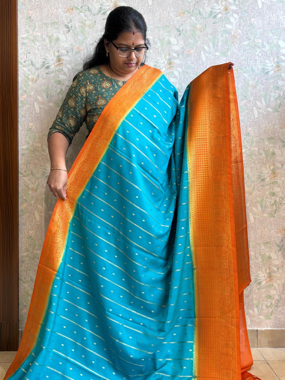 Kanchi Soft Silk( Rama Blue with Purple Checked)