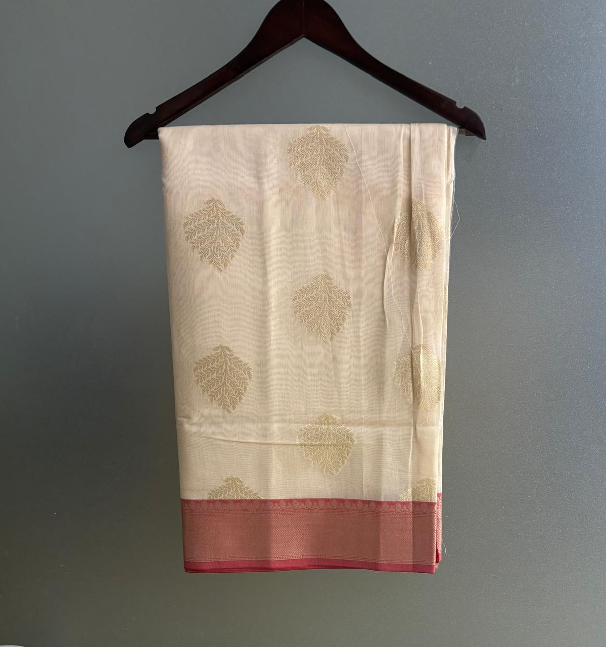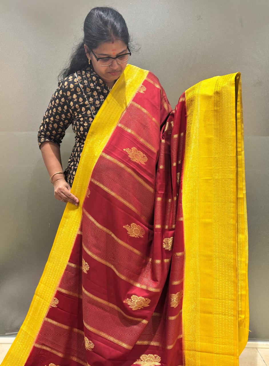 Kanchi Soft Silk( Burgandy With dark Green Raindrop)