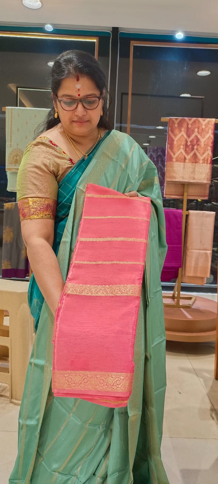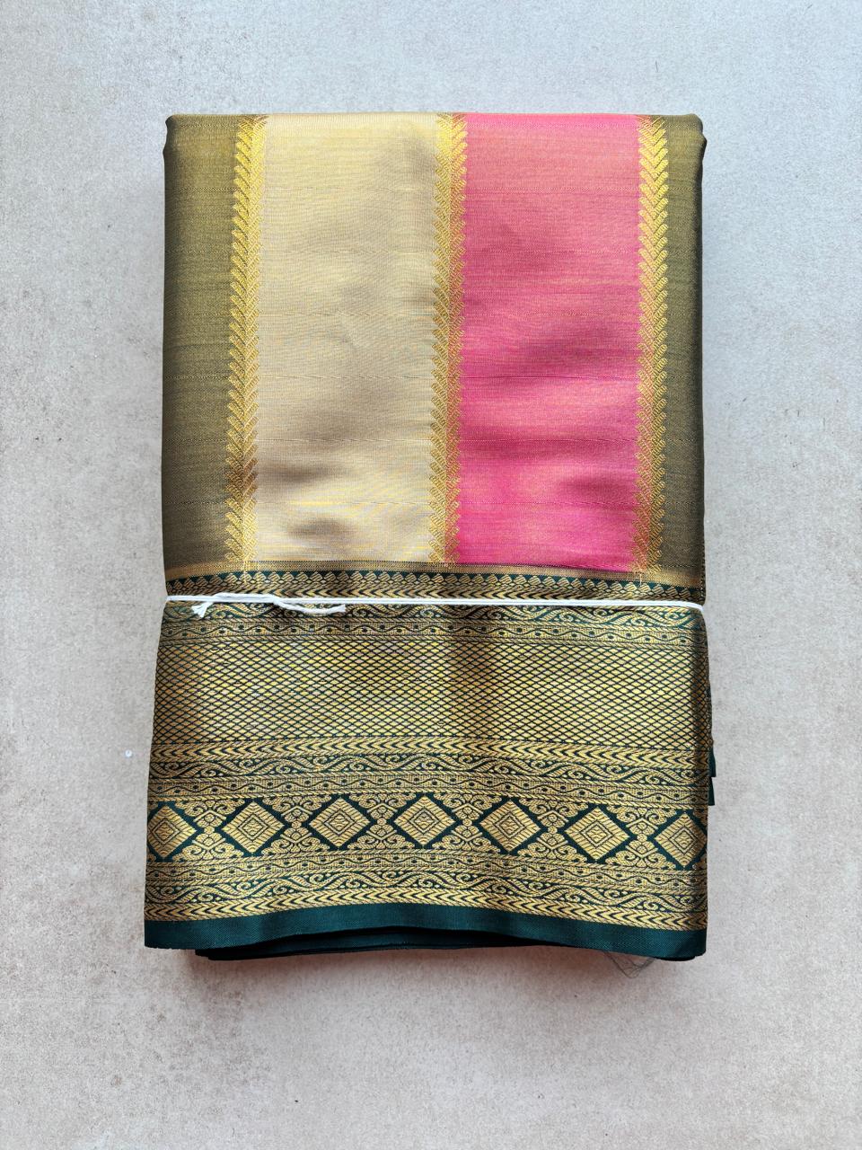 Kanchi Soft Silk( Baby Pink With Bottle Green)