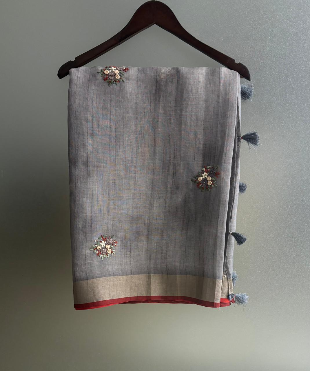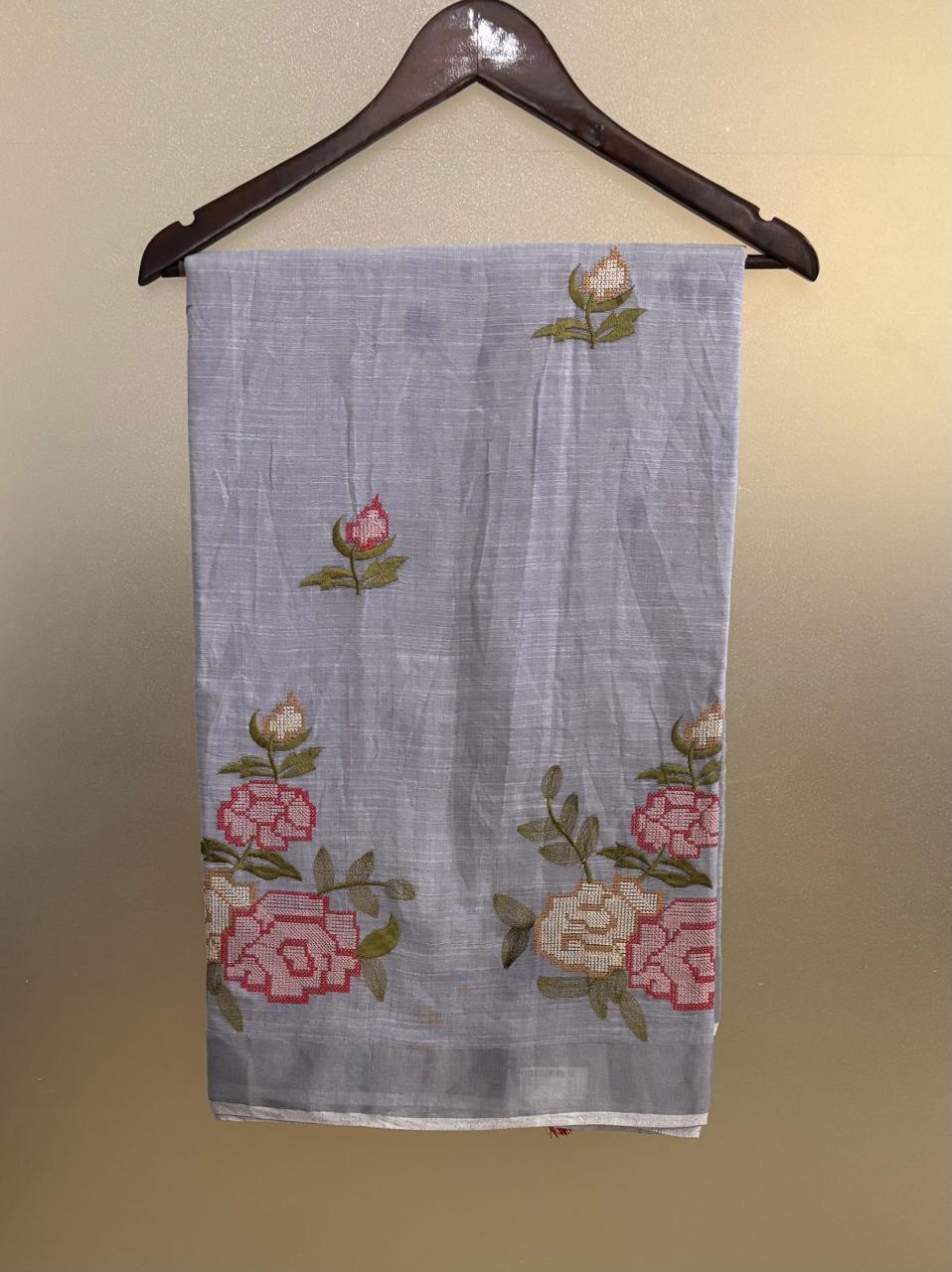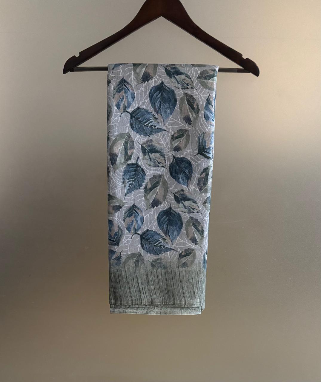 KHADI SILK FLORAL ( PEACOCK GREEN )