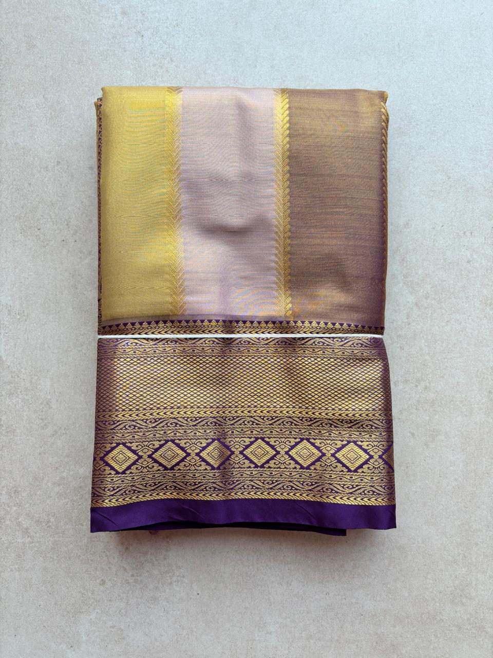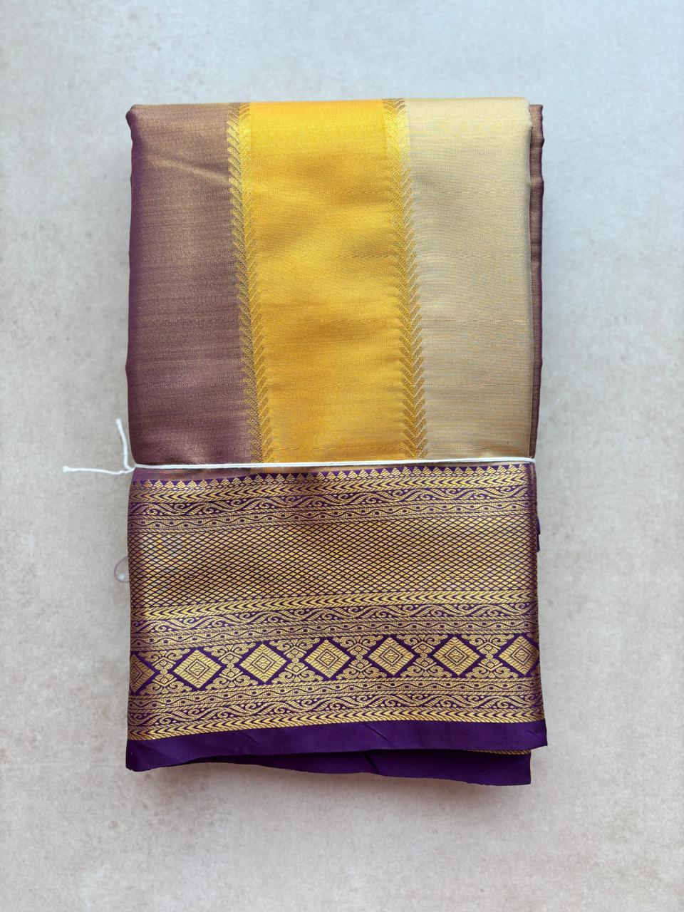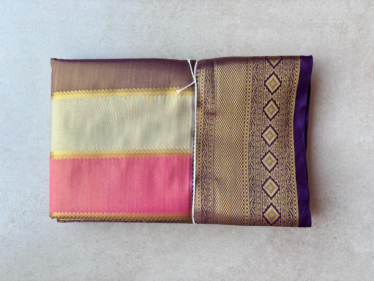 Kanchi Soft Silk( Yellow With Pink Stripes)